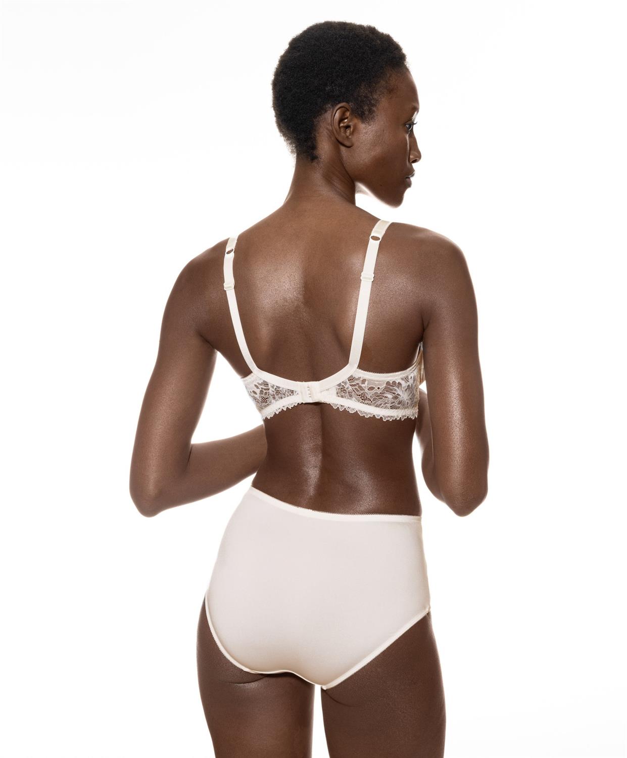 Kenmerken: BH zonder beugel – cup van 3d materiaal – haak en oog sluiting. Materiaal: 60% polyamide – 31% polyester – 23% elastaan. Voering cups: 90% polyester – 10% elastaan.